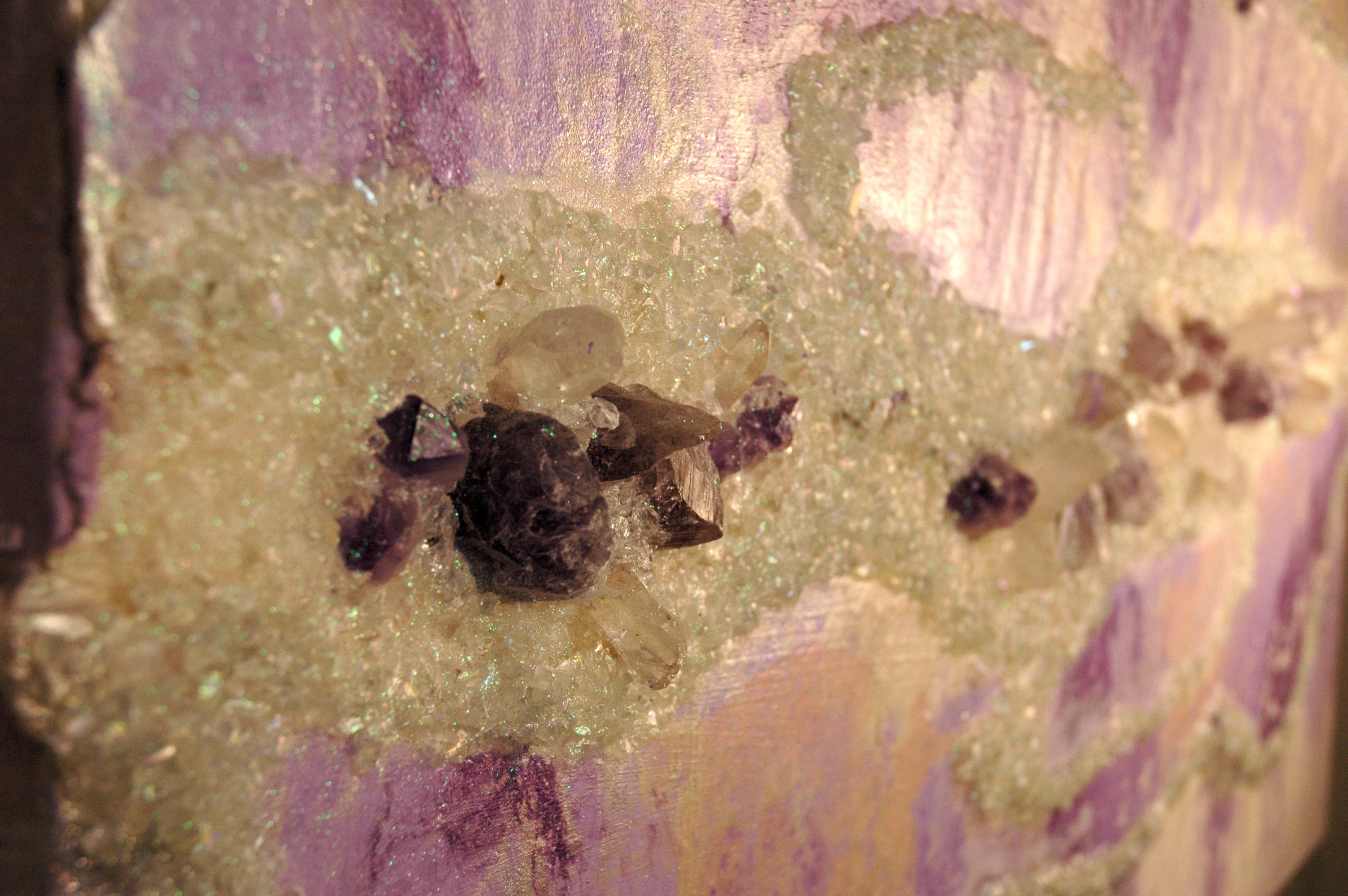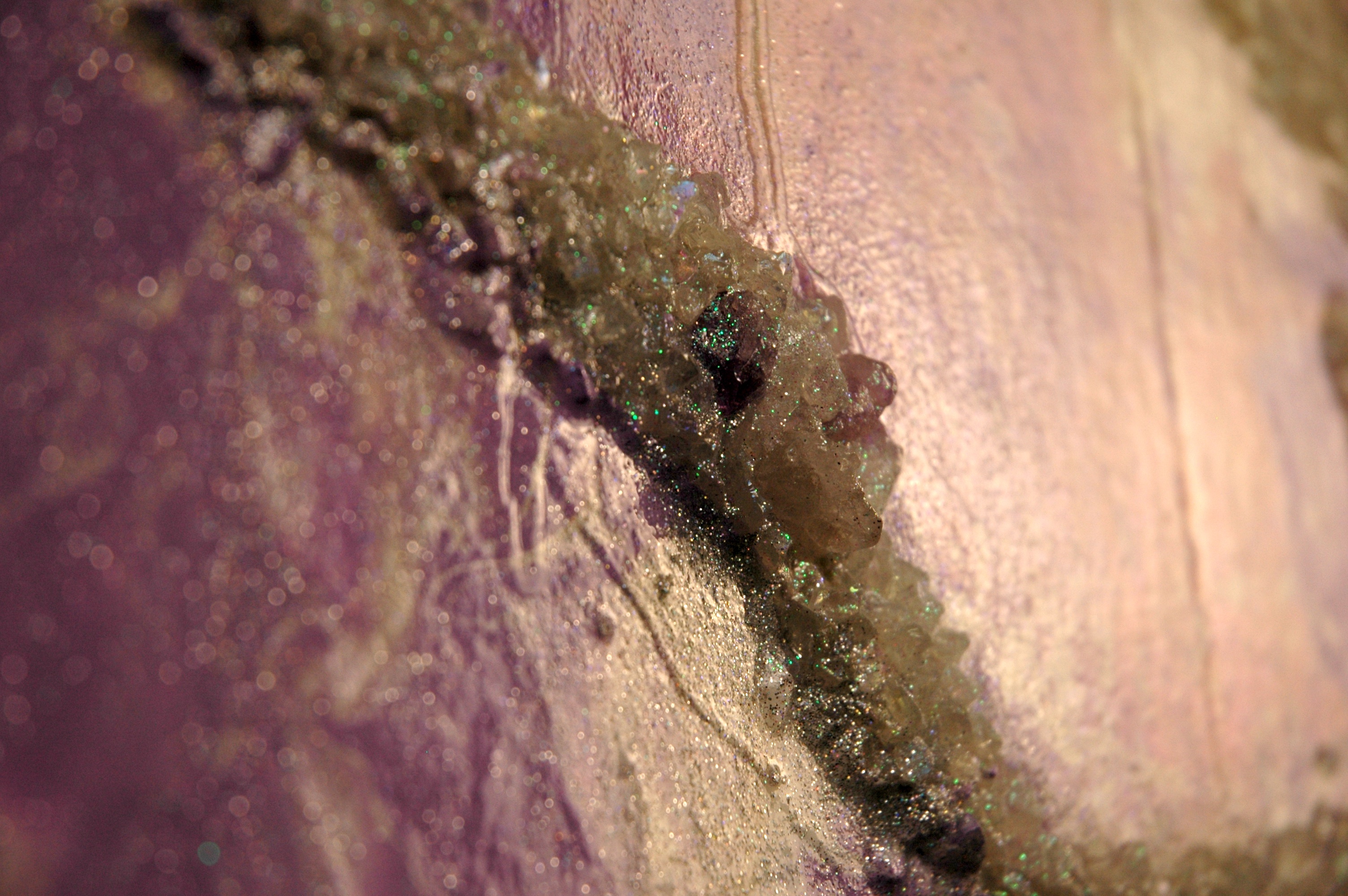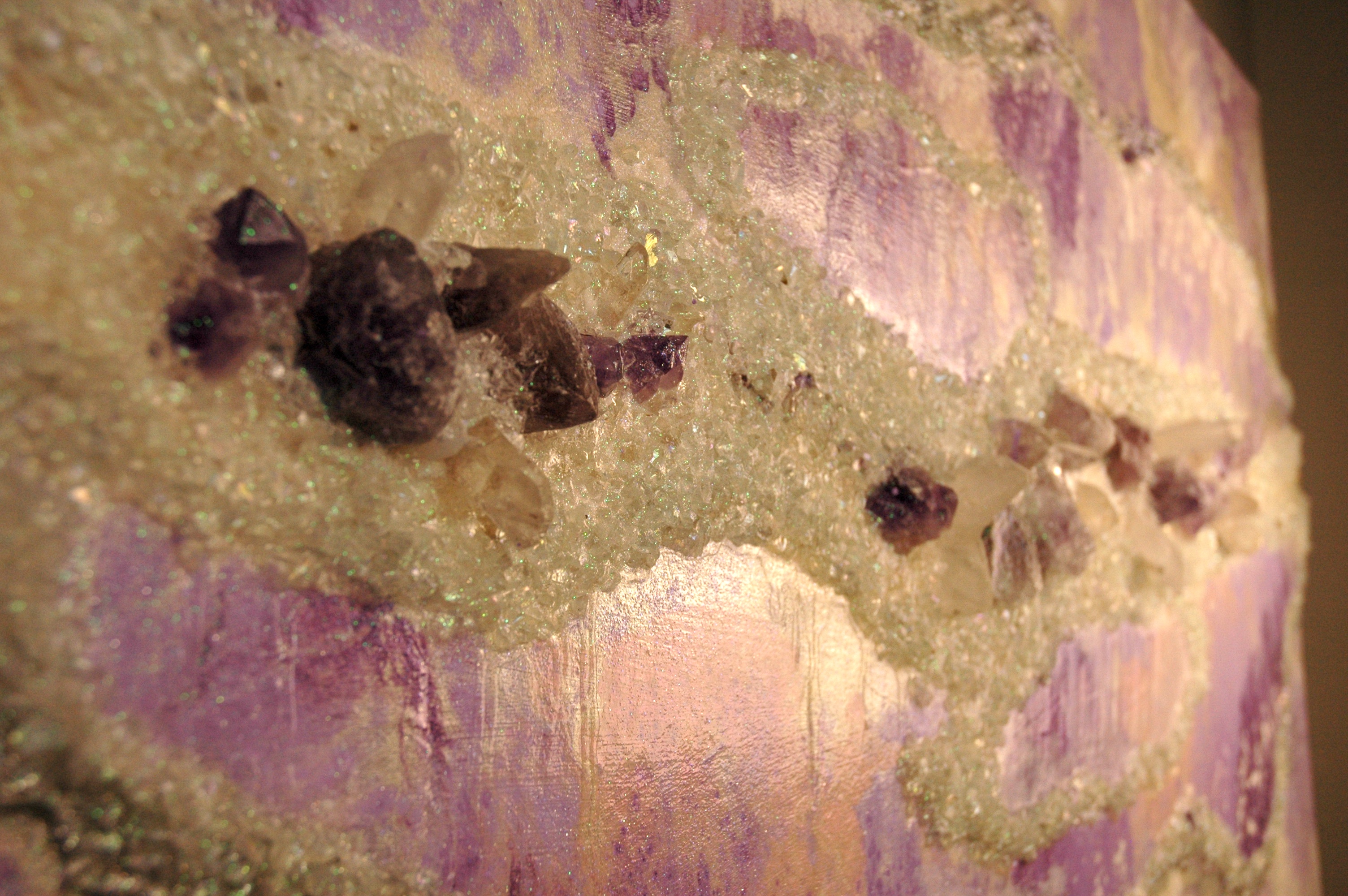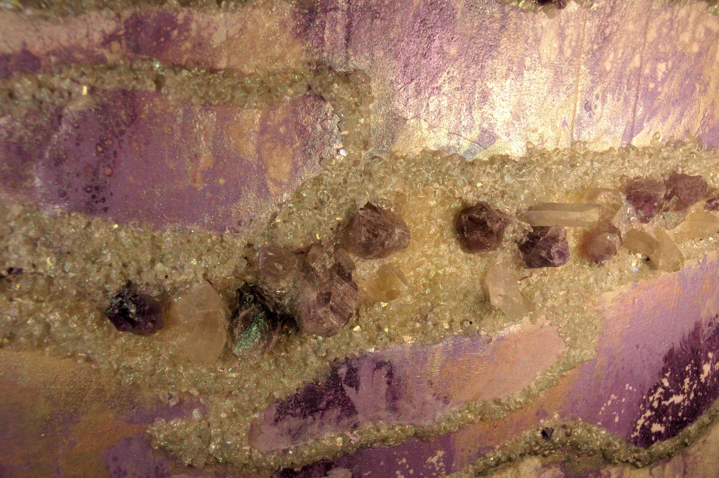 I built this piece using multiple thin layers of paint, finishes, and crystals to create a rich visual texture. The careful blending of these layers resulted in a unique color-changing effect that responds beautifully to its environment and lighting.