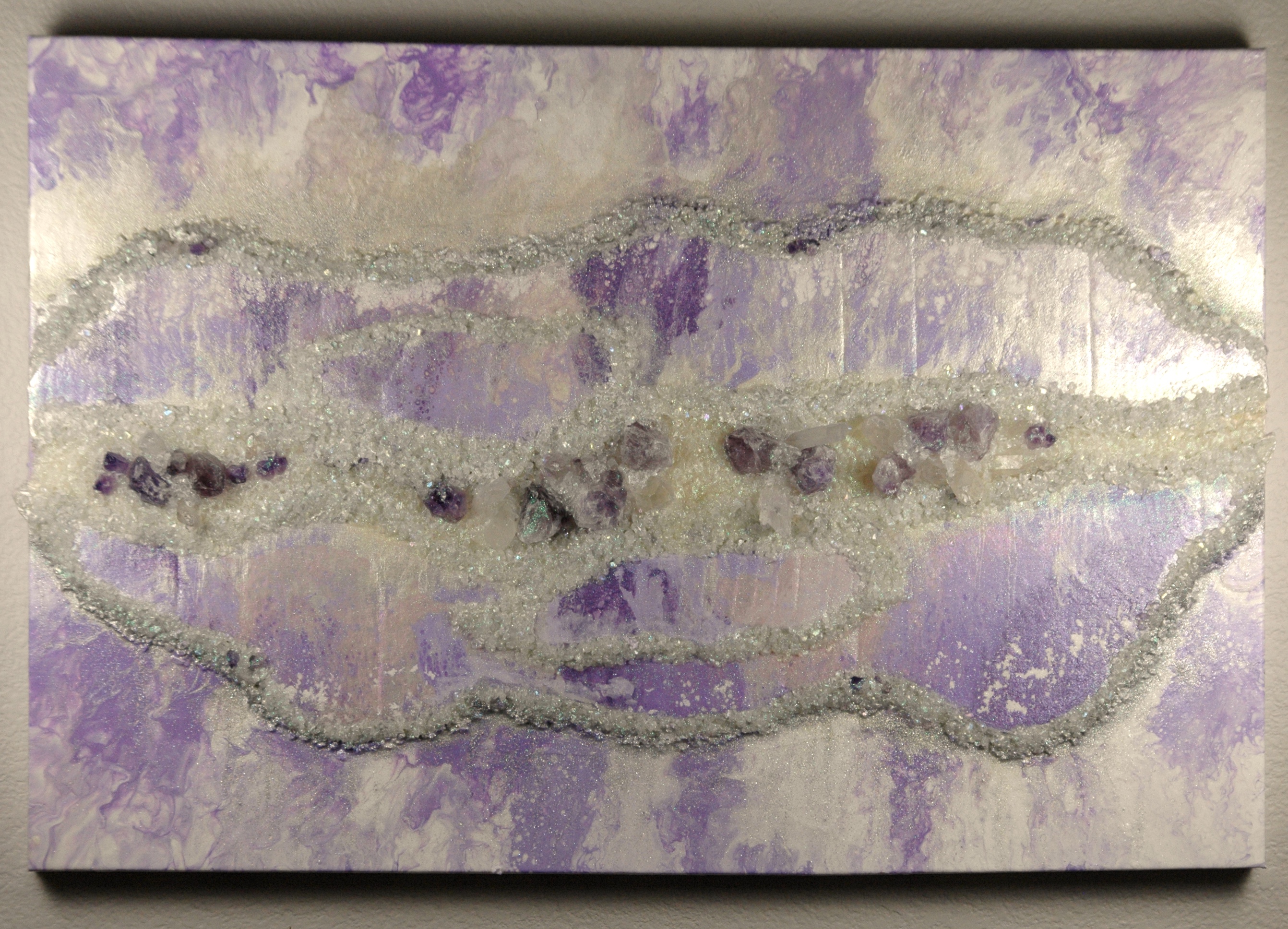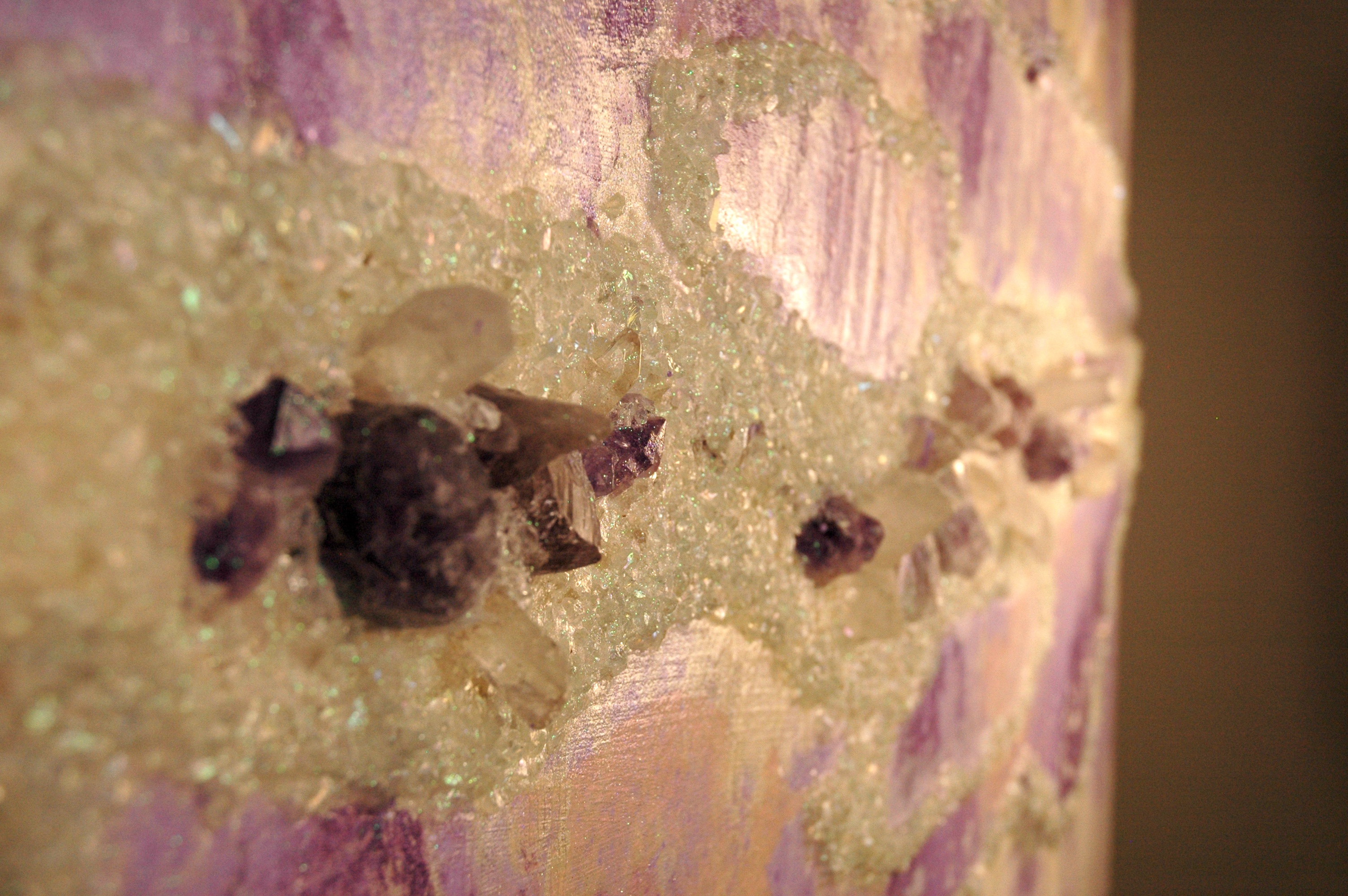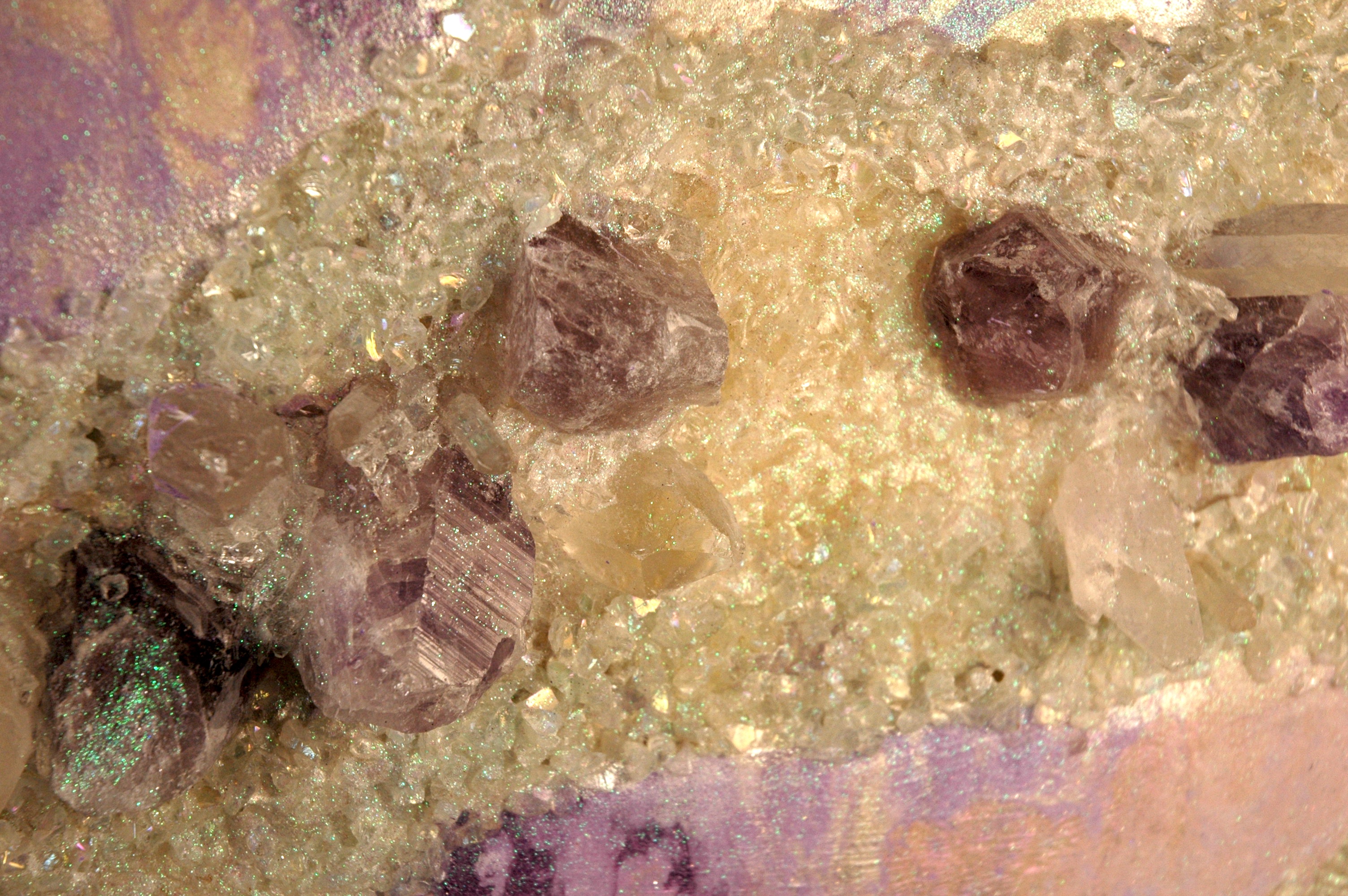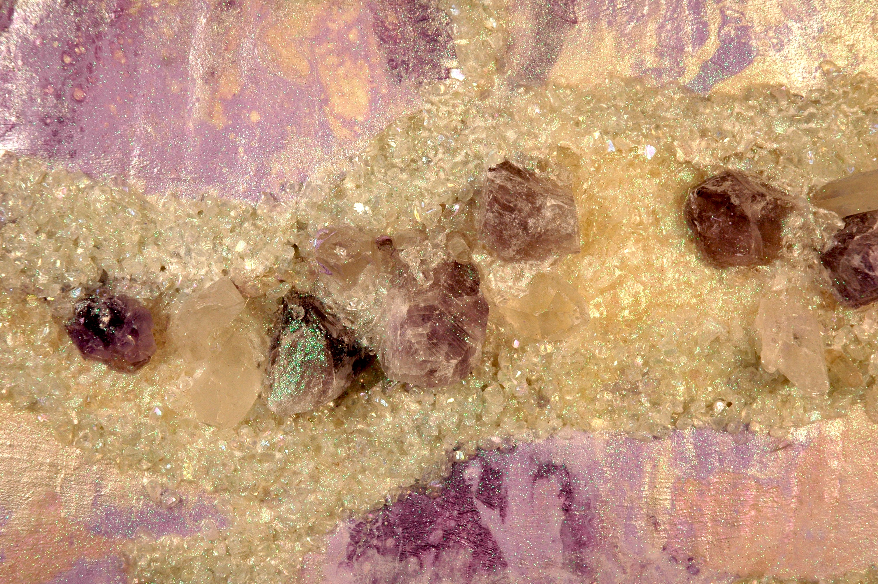 I built this piece using multiple thin layers of paint, finishes, and crystals to create a rich visual texture. The careful blending of these layers resulted in a unique color-changing effect that responds beautifully to its environment and lighting.