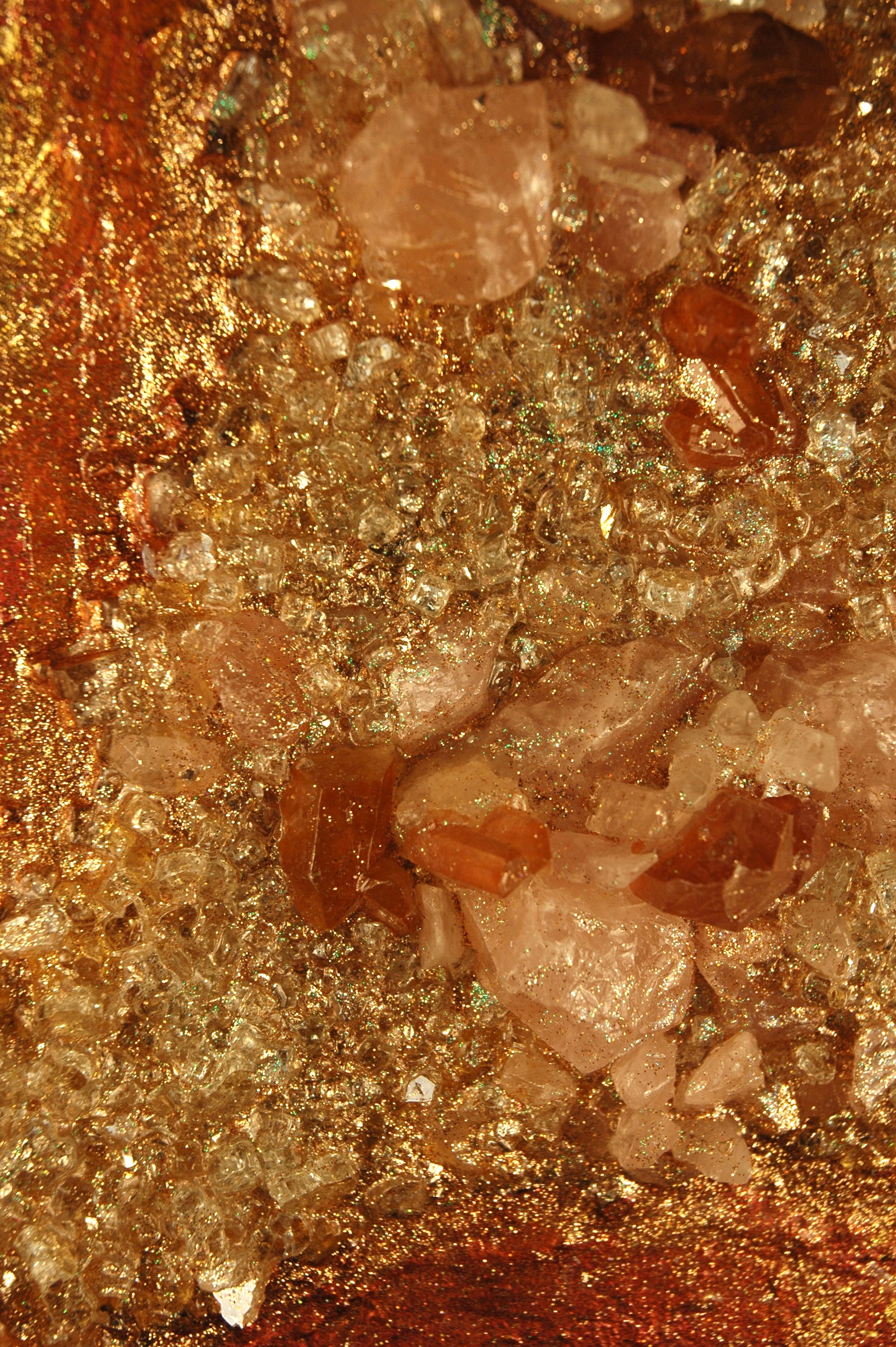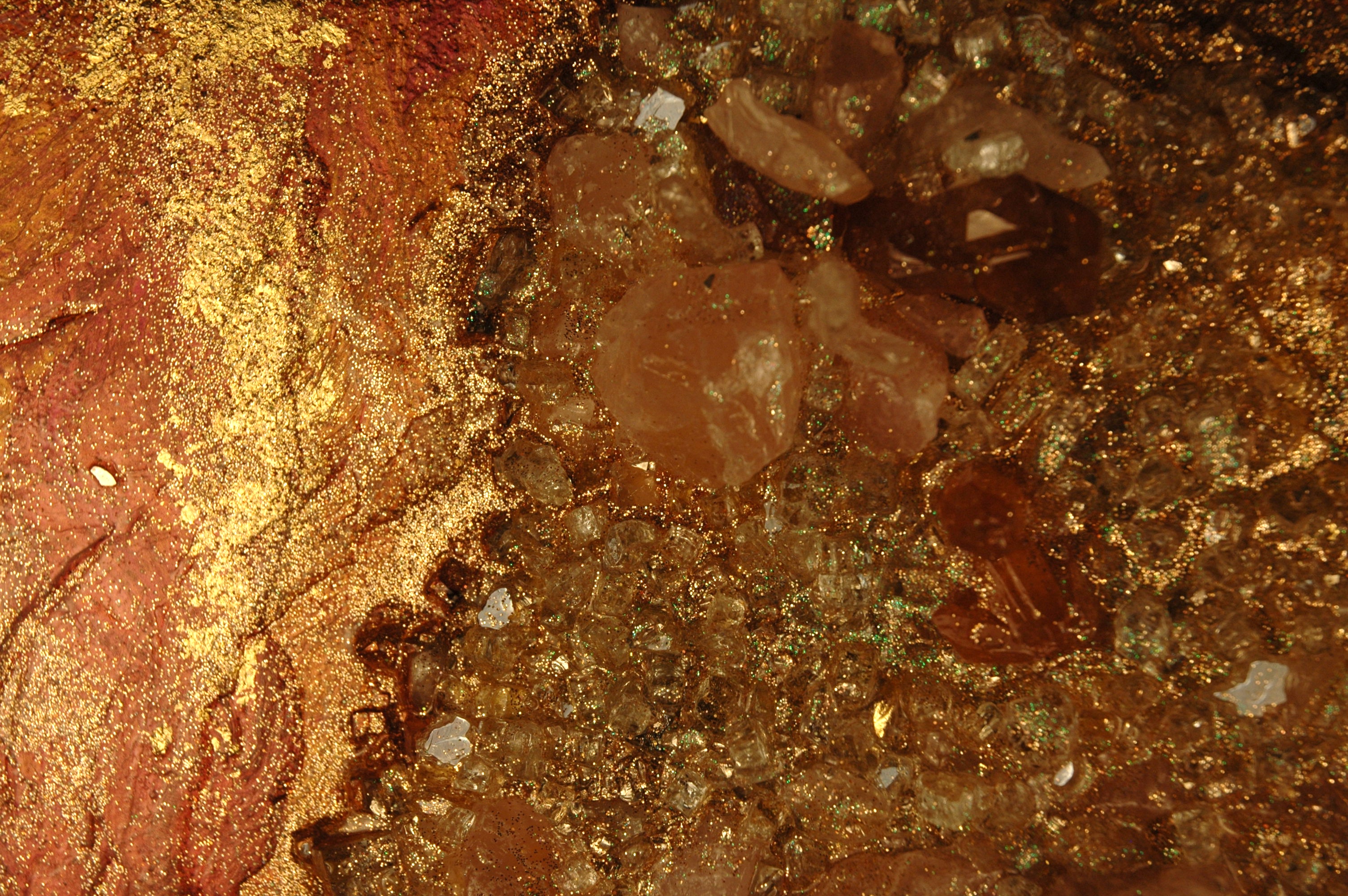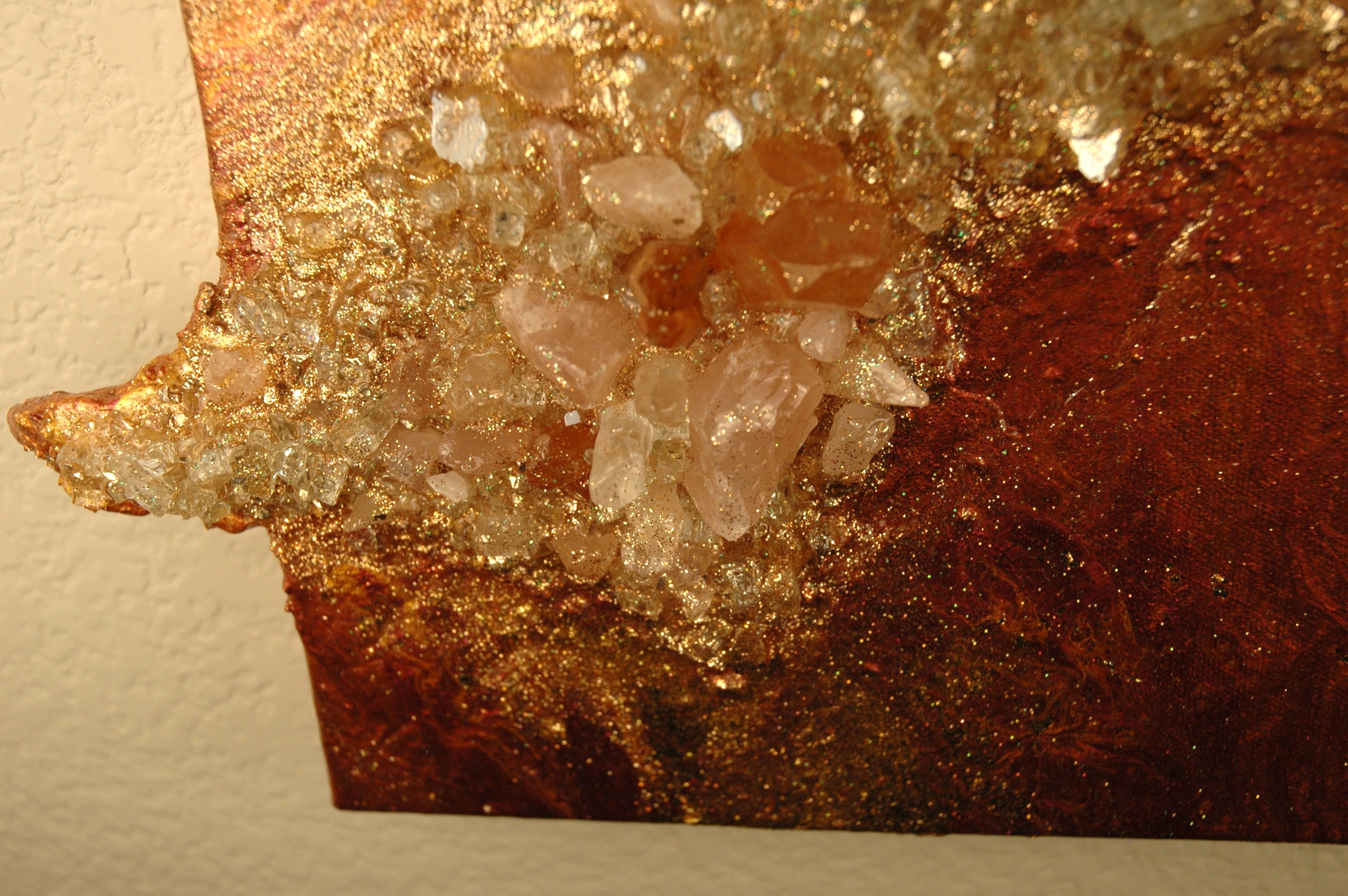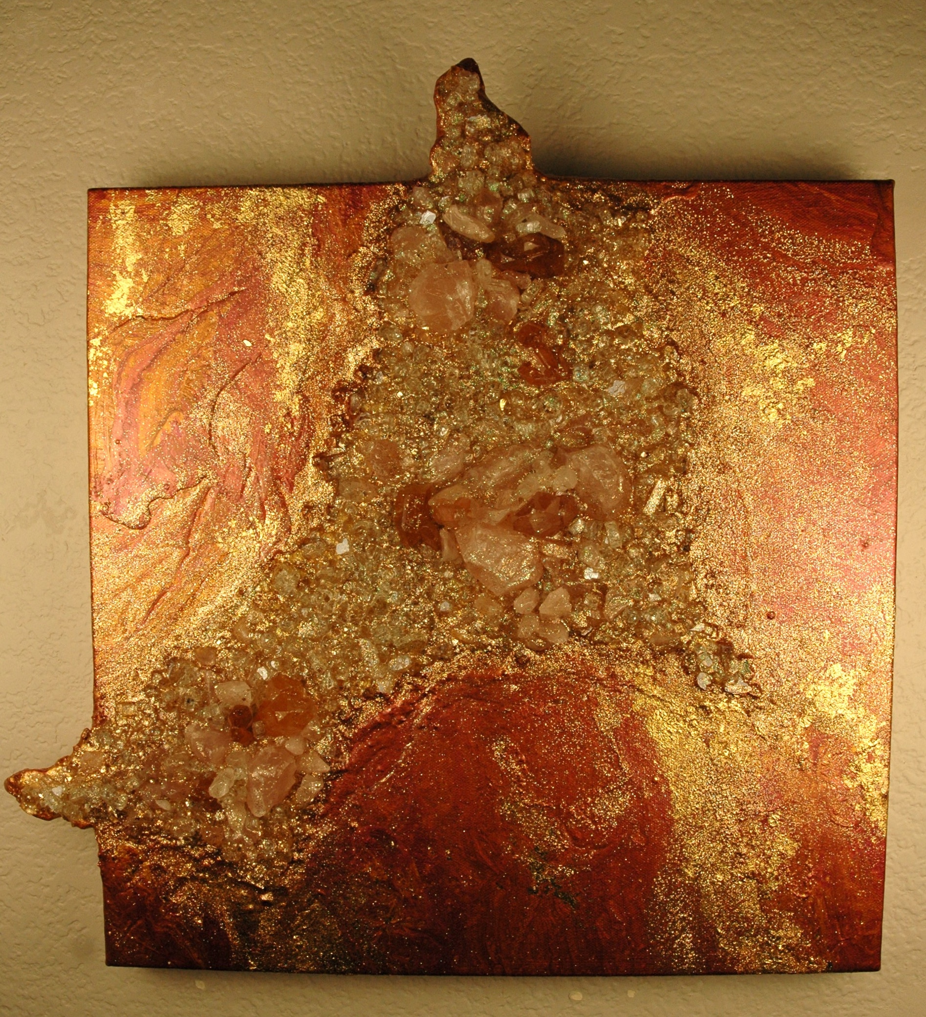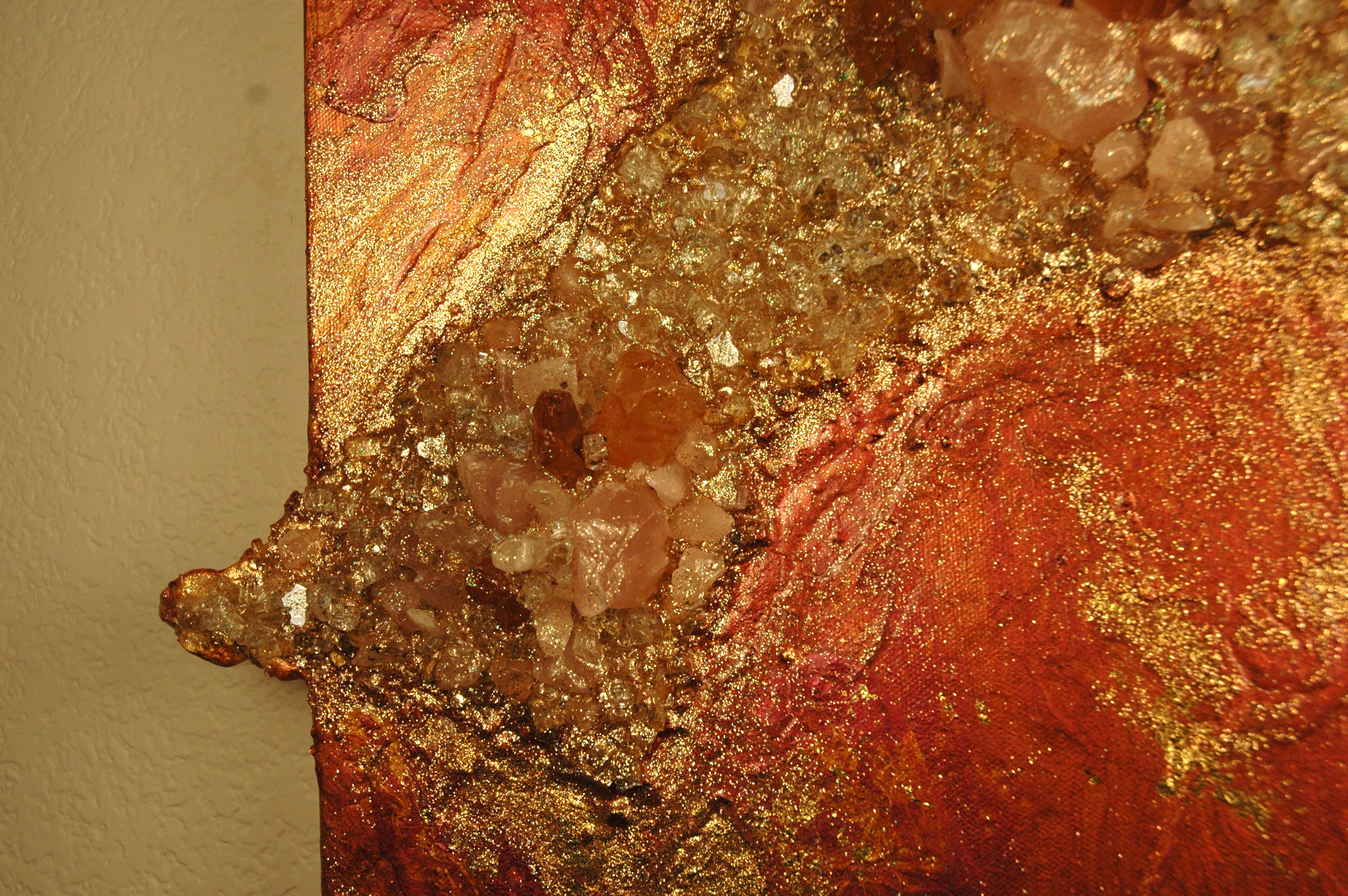 For this piece, I chose to work with rose and amber quartz crystals—an unexpected pairing that many might not think would complement each other. My goal was to create a rich, wine-inspired color palette, accented with copper and gold highlights to elevate the overall feel.